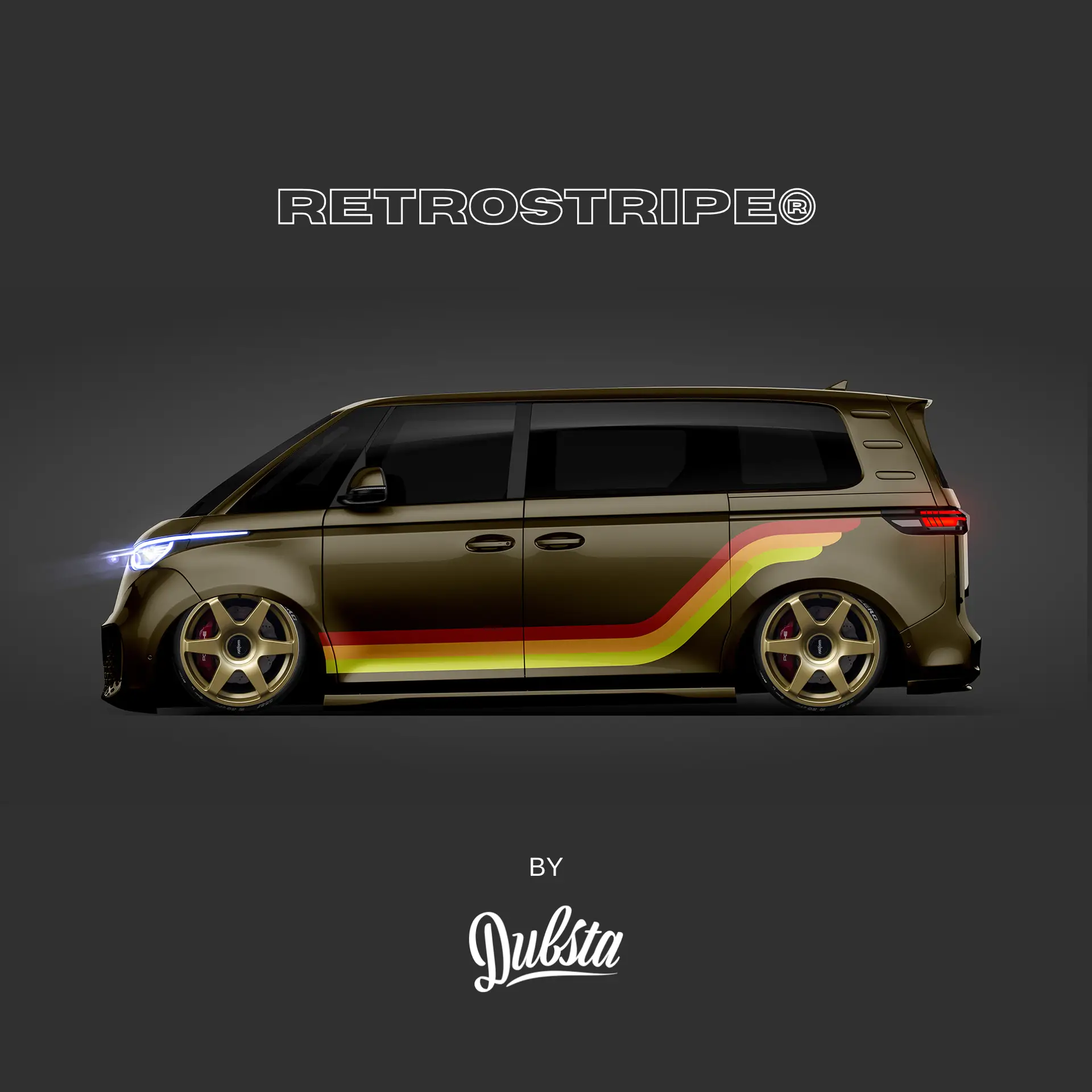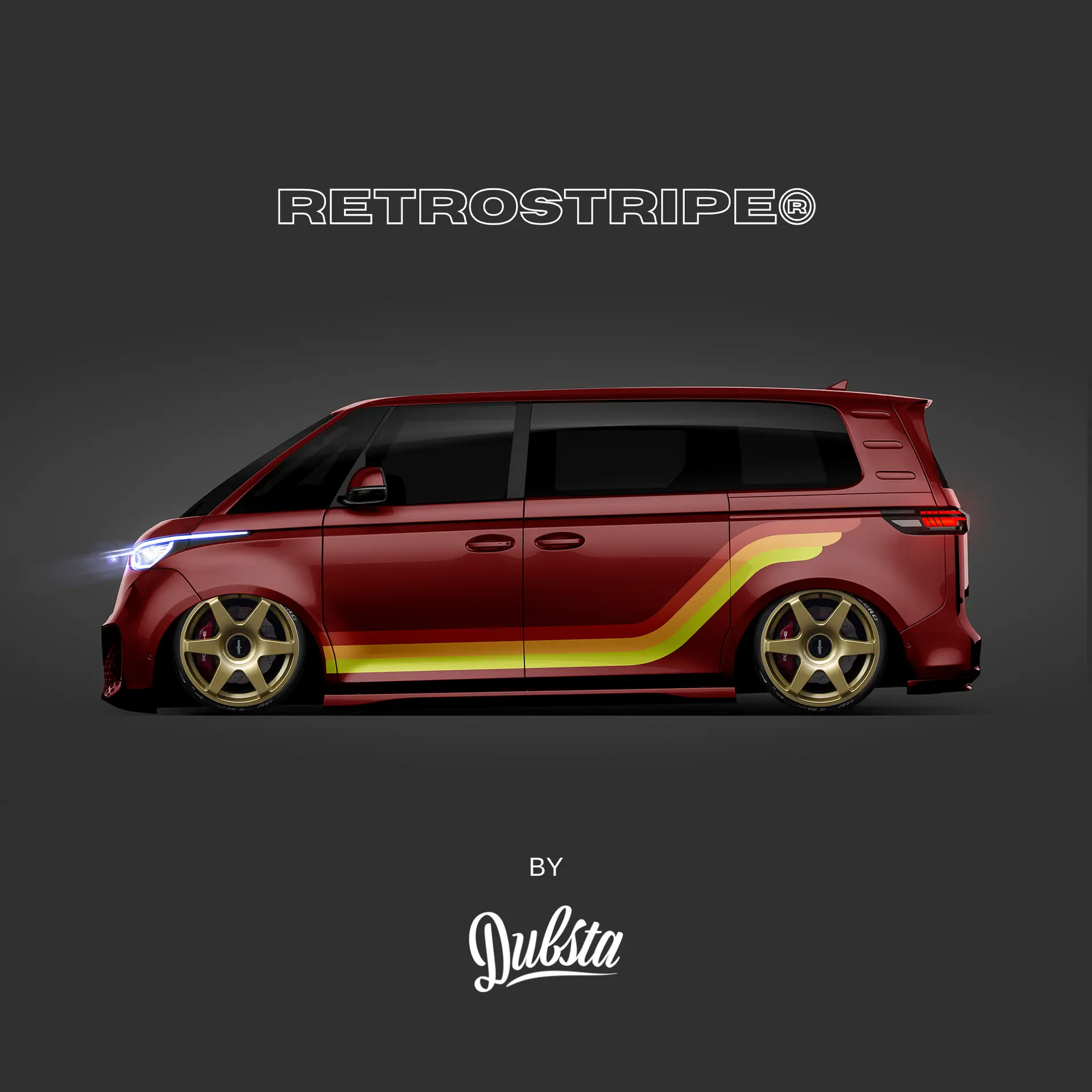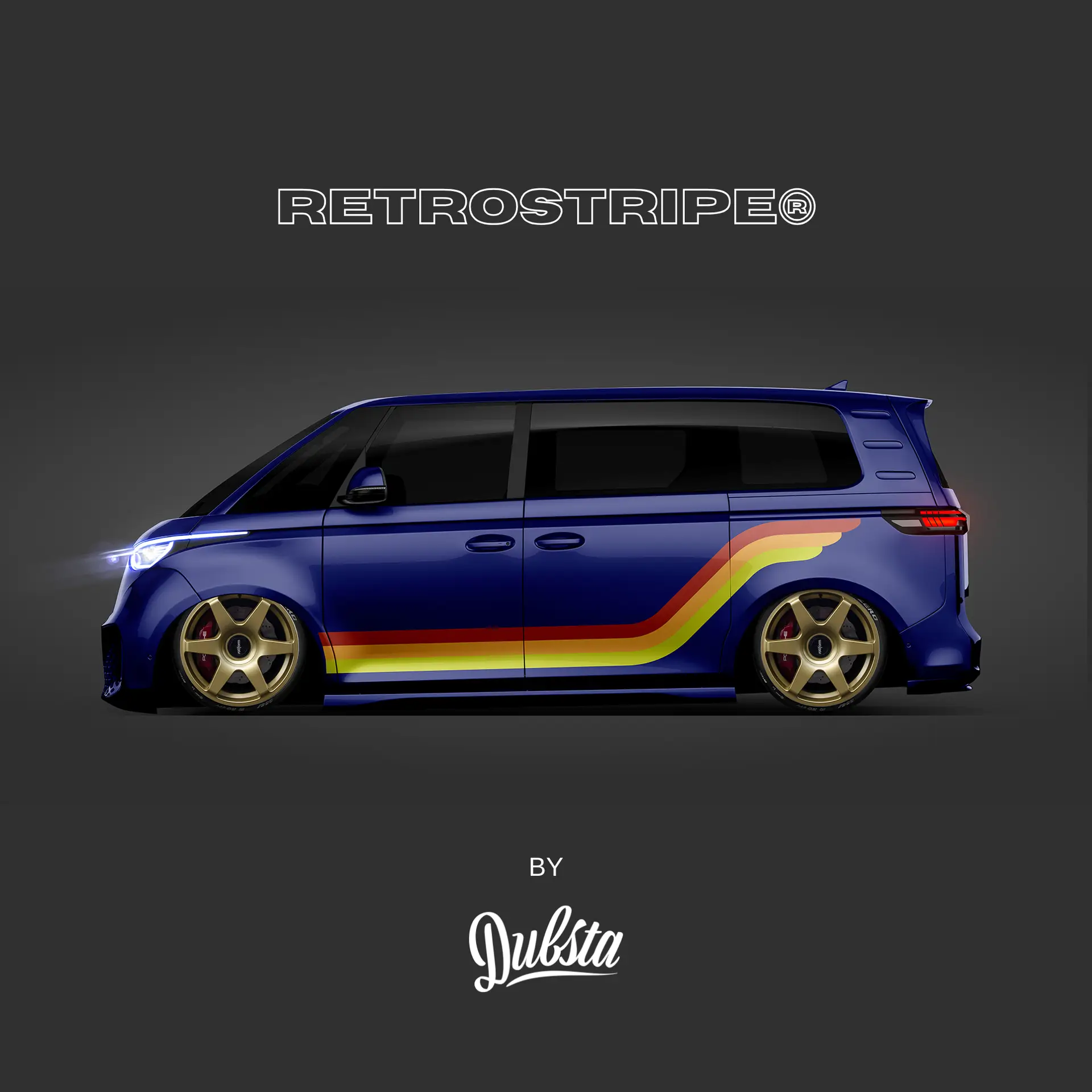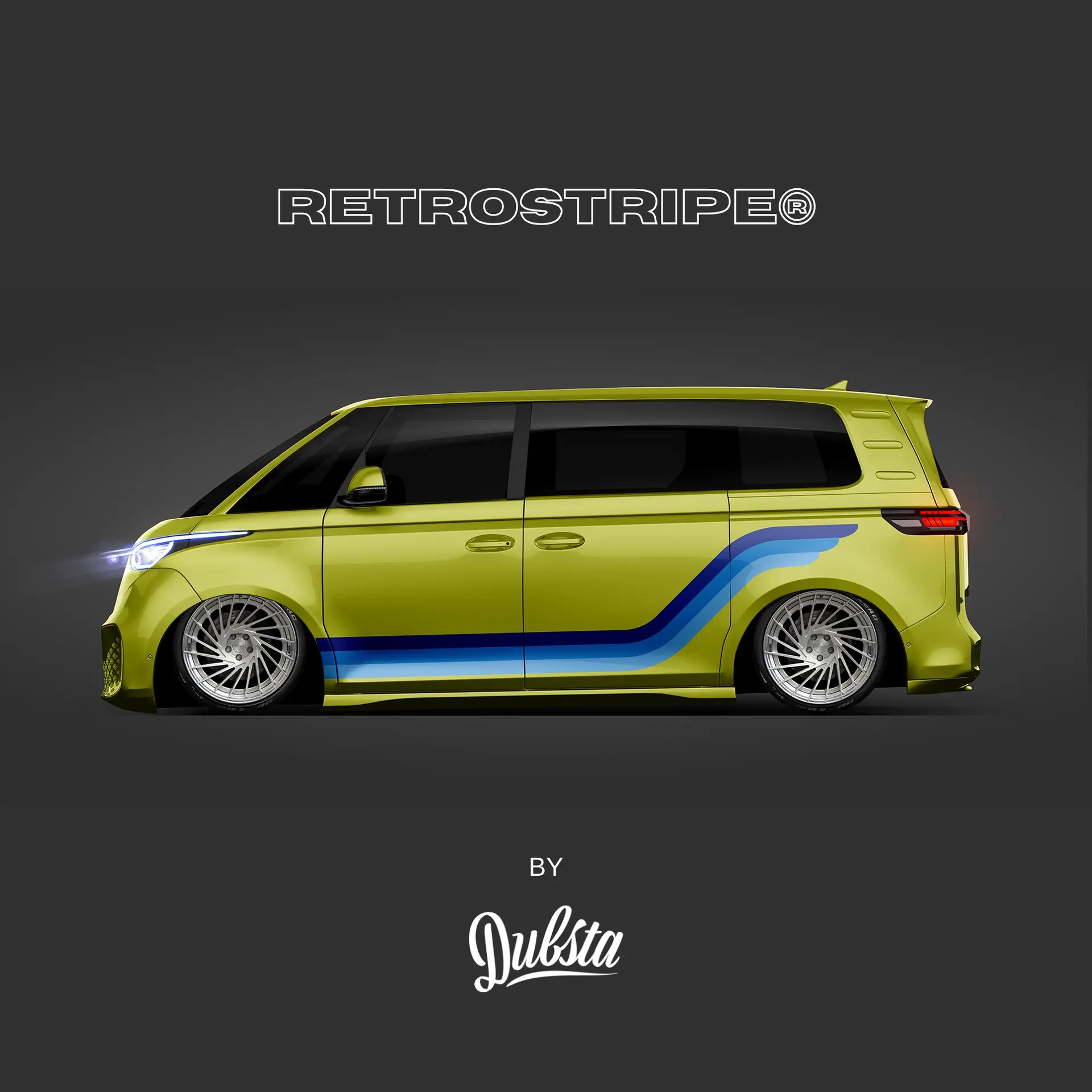 Transform your Volkswagen ID. Buzz with our RetroStripe® Side Stripe Kits, expertly designed for optimal durability and style. These decal kits are essential for any ID. Buzz owner looking to customize their electric vehicle with a unique and eye-catching look.