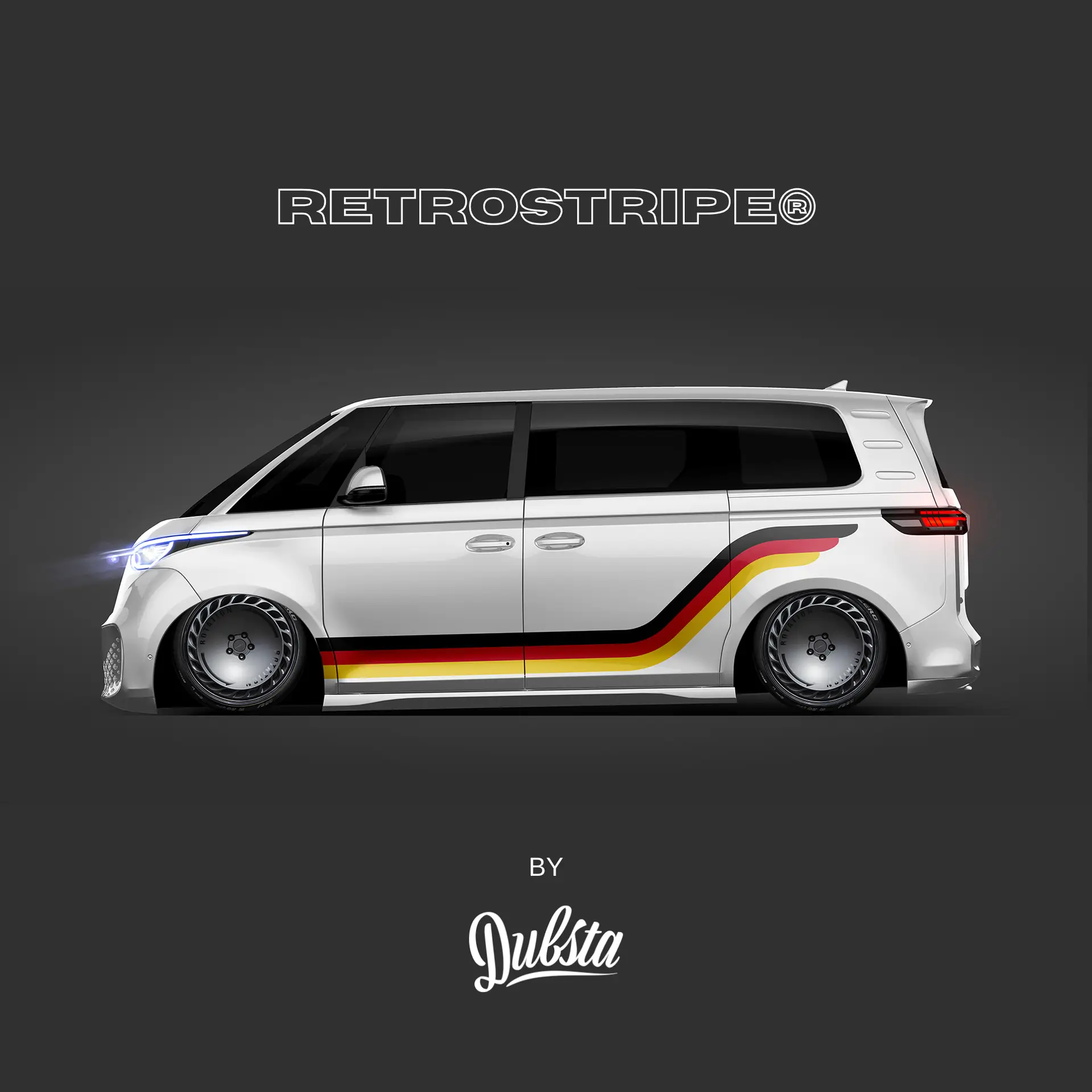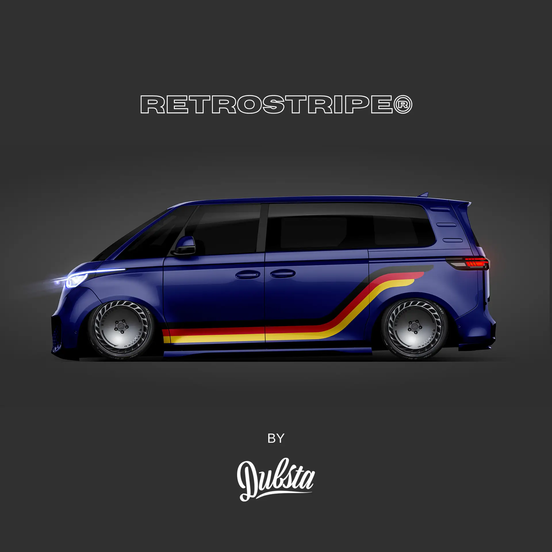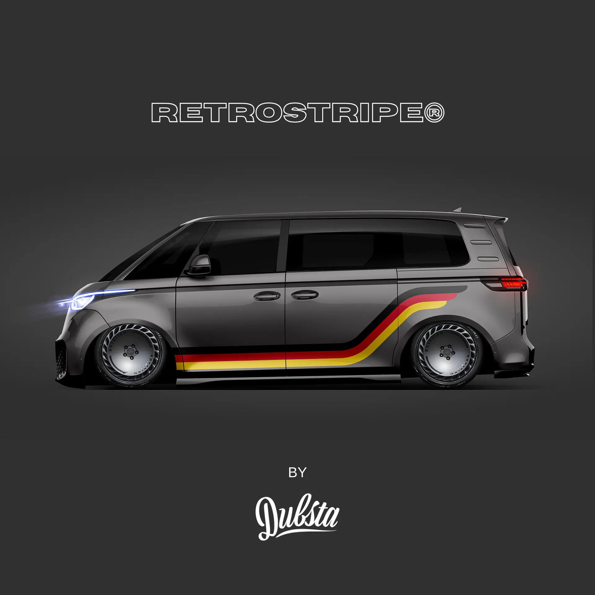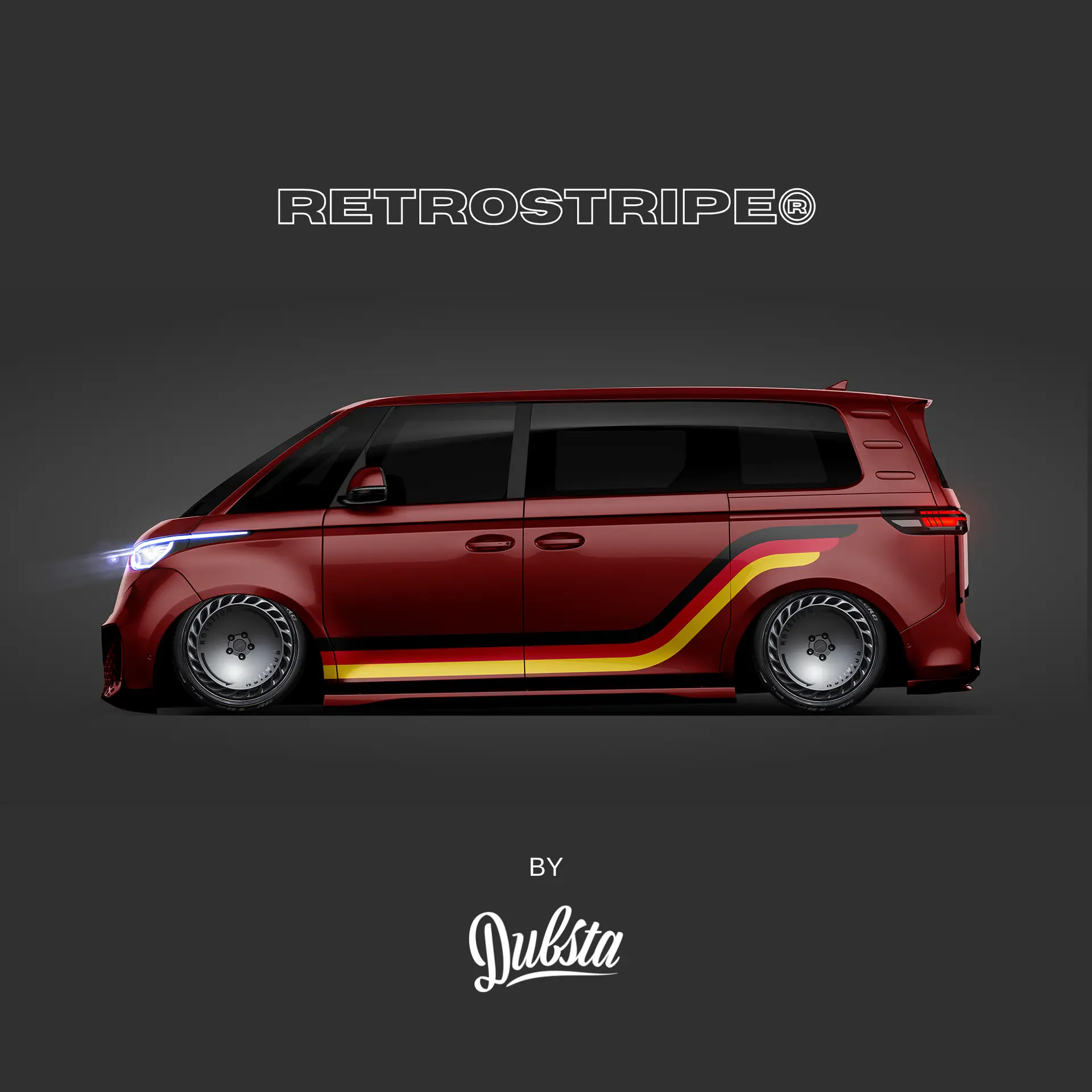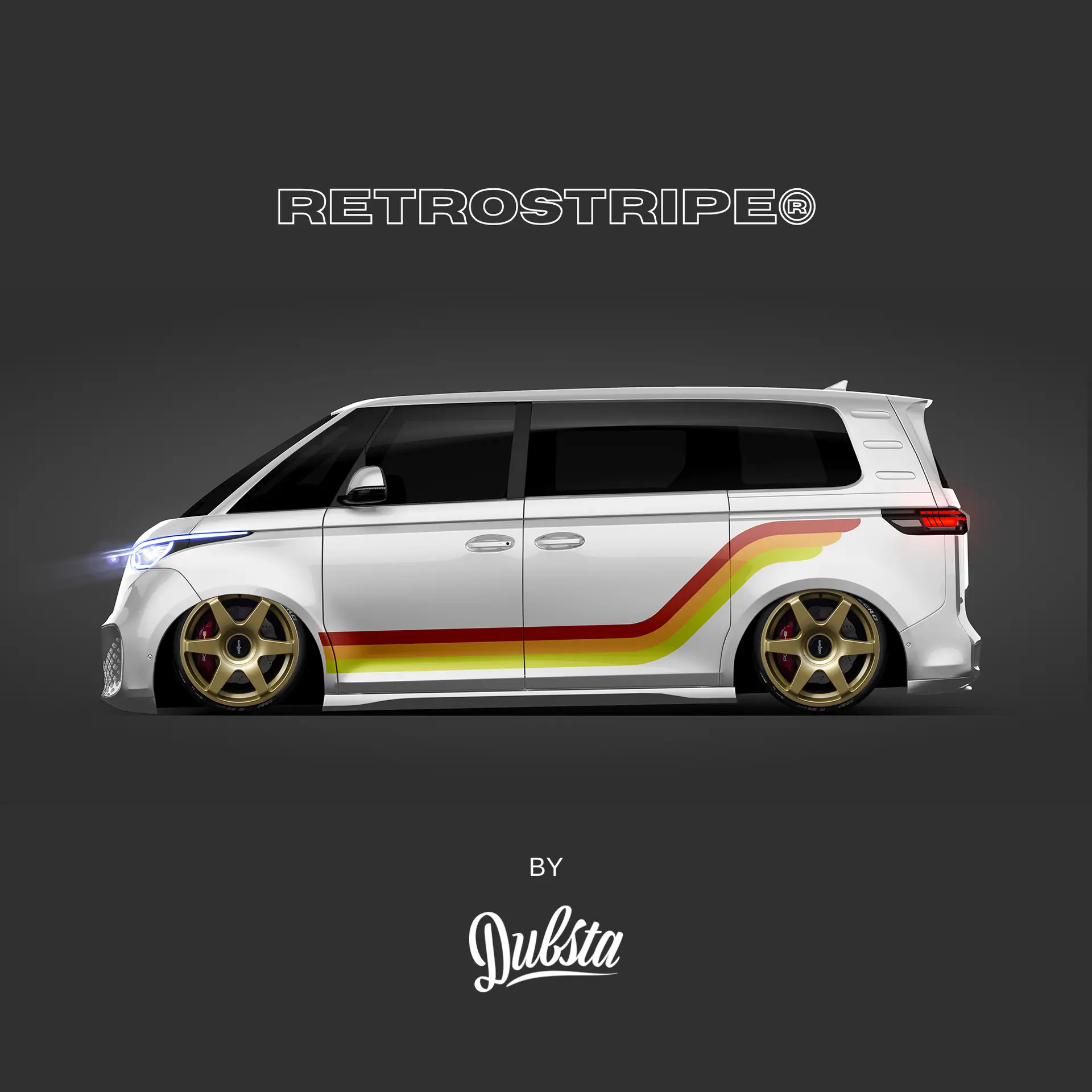 Transform your Volkswagen ID. Buzz with our RetroStripe® Side Stripe Kits, expertly designed for optimal durability and style. These decal kits are essential for any ID. Buzz owner looking to customize their electric vehicle with a unique and eye-catching look.