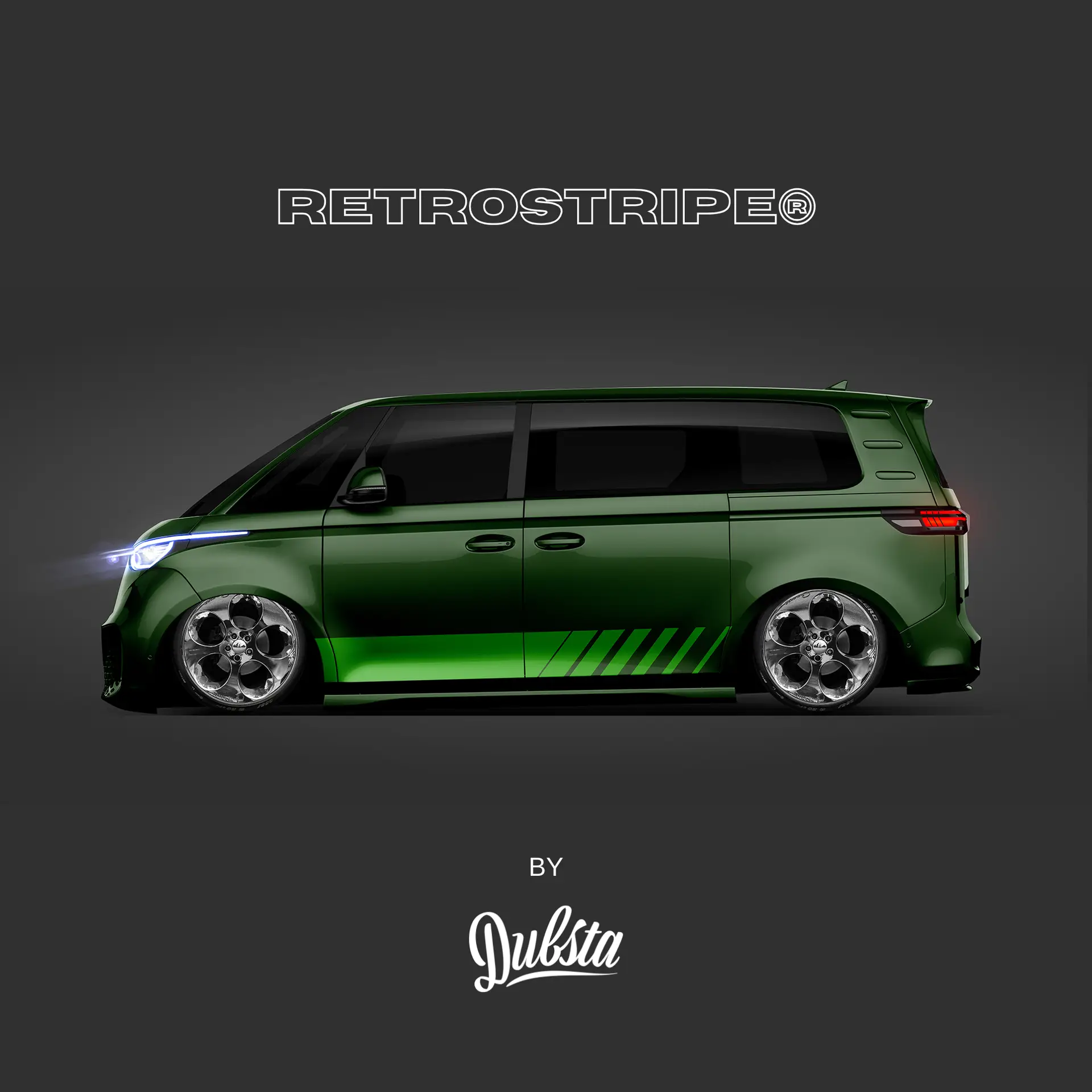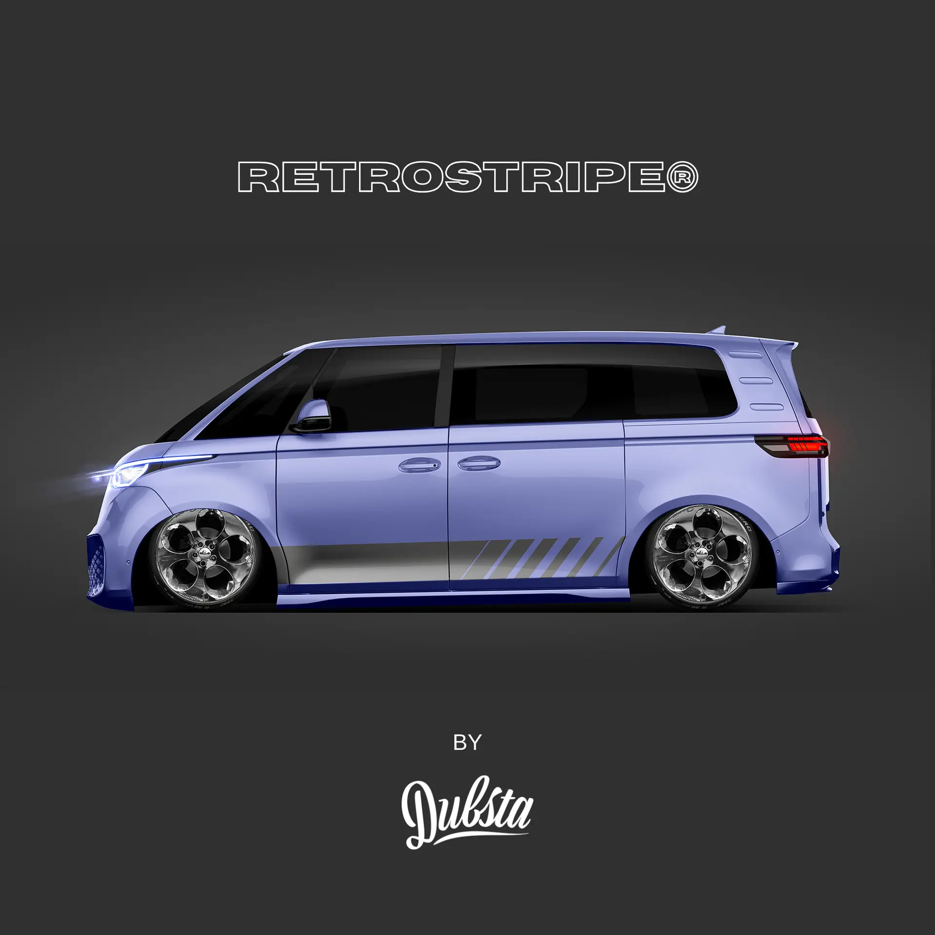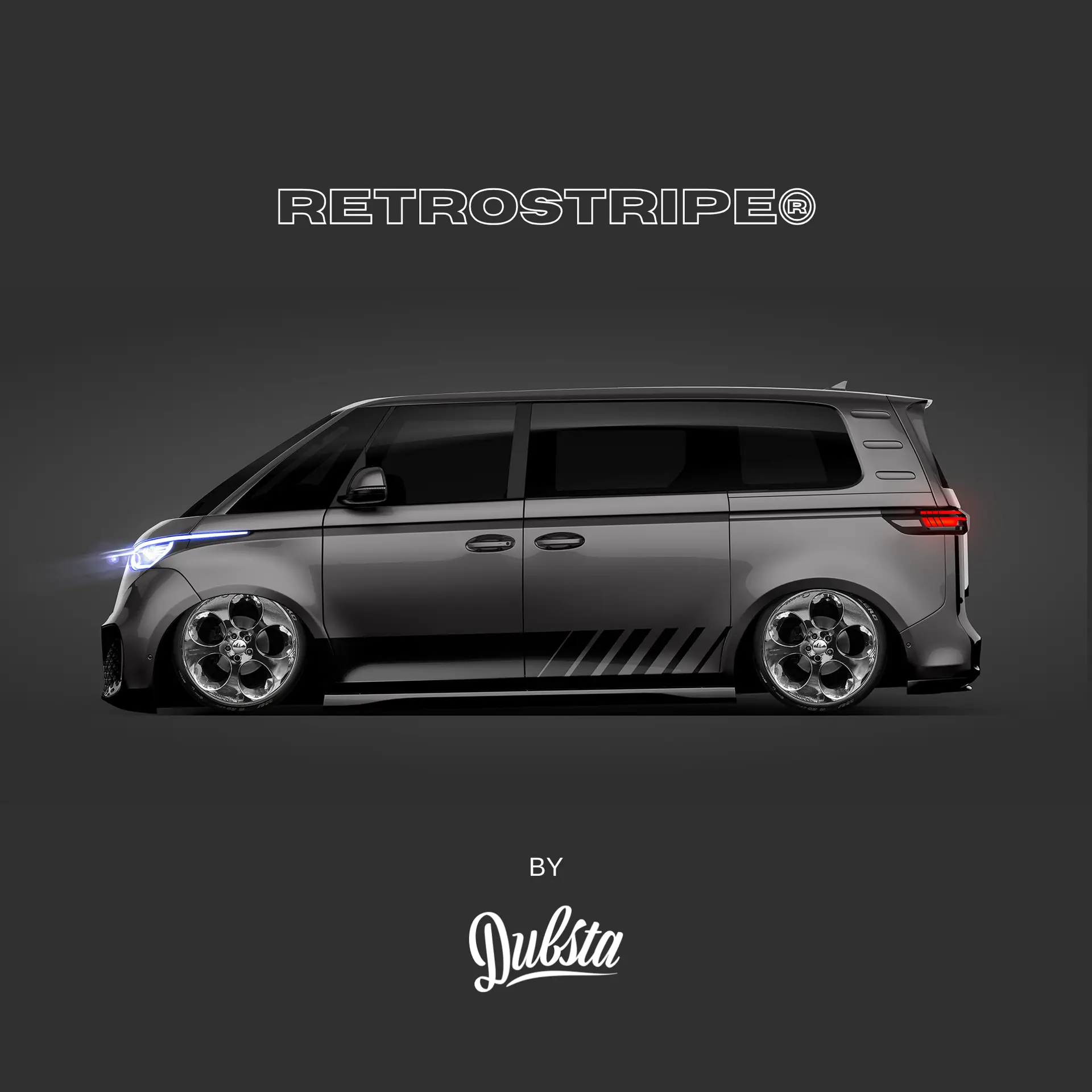 Transform your Volkswagen ID. Buzz with our RetroStripe® Side Stripe Kits, expertly designed for optimal durability and style. These decal kits are essential for any ID. Buzz owner looking to customize their electric vehicle with a unique and eye-catching look.